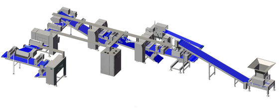 ZKS900 dough sheeting line provides a perfect dough sheeting solution for wide variety bakery projects , the following 3D drawing is a typical dough laminating line. The line is featured for it's advanced modular design , by changing the configuration , this line is able to manufacure dough for either pastries or bread .